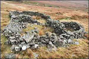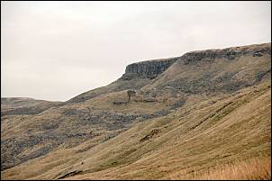 | I was heading roughly east towards the High Seat area. Fairly steep rock escarpments were up ahead but some grassy areas seemed to have a way through. Below one escarpment I saw some old spoil heaps and decided to investigate. A large landslip had washed some areas away but old ruins indicated mine workings. On further inspection a stone portal to an old adit came into view. The entrance was open and only partly flooded. I left the ruins and followed the contour north to where I found a way up the steep side of Mallerstang Edge. Once up the steep bit the gradient eased and I found myself on peat hags, but not too wet. Unfortunately I was now in cloud and all the views were lost. | |