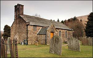 | Then I came out of cloud and could see Mallerstang below. At the Green lane I had a look at the interesting 'Water Cut' sculpture by Mary Bourne. Then an easy wander down the lane and I met the road where I returned to Outhgill. Before the car I had a quick look at the small Chapel of St Mary, which was refurbished by Lady Anne Clifford in 1663 after being left in ruins for over 50 years. |