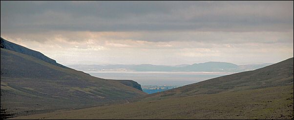 I found some shelter and had a short sit down to have a coffee break. There was still no visibility so I headed off on a compass bearing over Foule Crag then steeply down the scree on the west side. Before long the outline of Mungrisdale Common appeared to my right and Roughten Gill below. I was heading towards the Clove Stone which was over the brow to the NW and still out of sight. By now I had some nice views towards Keswick and also between Skiddaw and Great Calva I could see across the Solway Firth to the Scottish coast 50km away. I continued to follow a compass bearing towards the Cloven Stone and then, just as I walked over the brow of the hill, there it was just in from of me. Approaching from the south it’s easy to see where it got its name; it looks a bit like an oversized cloven hoof. I’d thought of having my lunch here but could find no shelter from the cold north wind. |