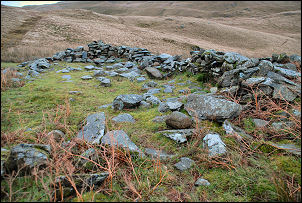 I checked out two separate weather forecasts before leaving; one said clear skies all day, the other, rain all day. I arrived in Patterdale to overcast skies but no rain. Both forecasts turned out to be wrong. There must have been a lot of recent rain as there were shallow floods over some stretches of the road from the Kirkstone Pass. It was still very dull when I set off, firstly along the road to Rooking then I followed the path diagonally up the fell to Boredale Hause. My first point of investigation was ‘Chapel in the Hause’ shown on the Ordnance Survey map. The last time I was in the area everything was covered in ferns but as it is now January I didn’t have that problem. I’d followed the higher of the two paths up the fell side and it took me directly to the ruin of the Chapel. On the 1860s map it is shown as a ruin and must have been of some age. Rain had threatened but didn’t materialise, though the wind seemed to be increasing. |