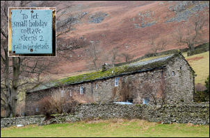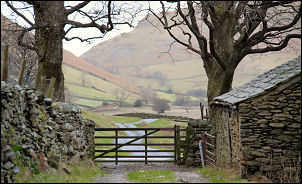 Further down was a nice terrace of stone cottages called Nettleslack with a sign advertising holiday accommodation. Passing Garth Head I took the left branch and down to a delightful grassy patch by Boredale Beck. It would be perfect to drive to for a picnic in the summer. Before I got to the end of the lane at Sandwick I took a path to the left. |