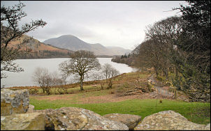 At the northern cairn I turned to the left and down towards Holme Beck. About half way down the fell is a fence which can be followed down at the steepest part of the descent. At the bottom I joined the excellent track to the NW as far as the wooden seat looking across Loweswater. I then descended straight down, through a couple of gates, and joined the main Lowewater shore path which I followed to Hudson Place then the farm track towards the road. |
