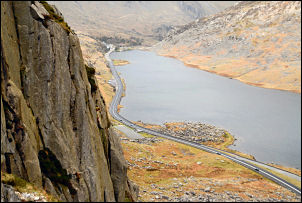 It has been a long time since I did any walking in Wales. Andy Taylor and some of his friends are having a weekend doing several of the 3,000s so I decided to join them for the Saturday part of their walk. I had a fairly clear and easy drove to the Youth Hostel at Idwal Cottage by Llyn Ogwen. Just as I arrived I was spotted by Andy and introduced to the rest of the team who had spent the night there. We set off along the A5 road following the lakeside until we reached the start of our climb up the first of the peaks. |