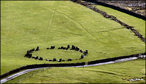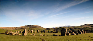 Many years ago I had a walk up to the magnificent stone circle at Swinside near Millom, Cumbria. I thought it was about time to re-visit the site and also take a look over the Black Combe and White Combe areas. I was blessed with a wonderfully sunny morning as I drove to Cumbria. It was clear and cold and the car’s outside temperature sensor showed -1dec C most of the way. Swinside Farm is about a mile up a private track. I left the main A595 road and took the narrow lane which is signposted ‘Fell Road’. Near a gate I found a wide verge and was able to leave the car and set off for the circle. It is a while before it comes into view but when it does it is worth the effort. The circle comprises 55 of the original 60 stones formed into a 90ft circle |