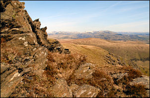 Eventually the summit of Black Combe appeared in the distance but I decided to find a sheltered spot along the ridge of Blackcombe Screes first. The idea was to sit down and enjoy a leisurely lunch with wonderful views. I found the ideal spot with shelter from the cold breeze and something of a sun trap. |