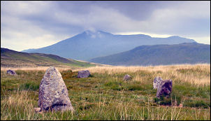 Here is where I wanted to investigate the group of stone circles that the map shows. I soon found the natural stone outcrop that indicated their position then came across the interconnecting paths that link them. They were large in diameter but not very high, so difficult to photograph. I headed out to the NW towards Low Longrigg to find some more but the absence of any path and very rough ground made the going quite difficult. I found a small circle but I’m not sure I was on the right one so I headed straight for Boat How and higher ground. At one point I stopped for a coffee but didn’t get chance to finish it because the overcast muggy weather made it the perfect place for clouds of midges. They descended on me in great numbers and there was no question of me hanging around. |