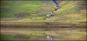 I speedily set off towards Burnmoor Tarn and Burnmoor Lodge just above it. The building is quite substantial and securely locked and boarded up. I walked past and headed for the SW end of the tarn then straight up the steep climb up Illgill Head. About half way up there was a slight breeze and I reckoned I would safe from tormenting midges. I was right; I sat by a boulder and ate my sandwiches with the expanded views below. |