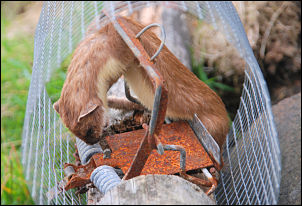 I was now following the same route as last week when I was back-packing. On the north side of the wall was a mechanical trap over a small ditch. What looked like a stoat had been caught in it. It was there last week when I passed. Then I couldn’t see anything because of the wind rain and cloud. |