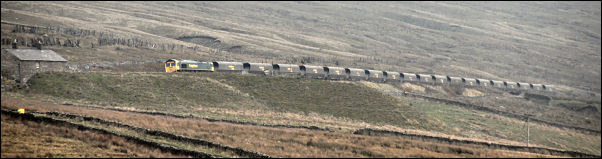I turned right to head for Cowgill and when I came to the first gate to get on the green way I reached the devastating damage done by the bikes. The ruts were so deep I don’t know how they get their machines in them. Eventually the grass flattened and I was wandering along a very pleasant track along High Ellershaw Edge where I had nice views towards the Rail Station at Dent and also a goods train coming along the line. A steep descent followed down to Cowgill where I had a look at the Church of St John but couldn’t get inside because the door was locked. A short walk down the road took me back to my car. |