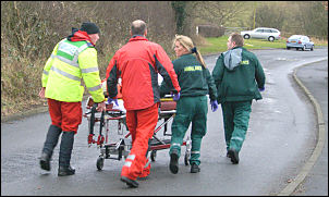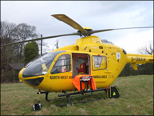 Mon 04 Feb 2008 I was cycling home from Chorley when I saw the North West Air Ambulance land in a field near Town Lane, Leeds and Liverpool canal area. Shortly afterwards an injured man was brought out of a nearby house on a stretcher with head injuries. Apparently he'd fallen off the roof while doing some repairs.