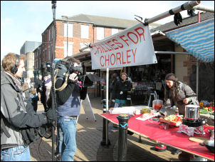 Tue 26 Feb 2008 Chorley Market is worth a visit, even if its just to see the colours. A TV programme was also being filmed at a 'Chillies for Chorley' stall.