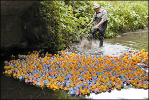 successful Duck Race on the River Lostock in Whittle-le-Woods.