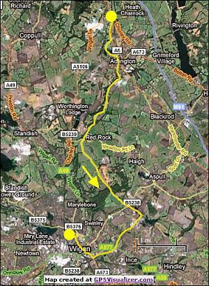 end. Walked along Westhoughton Road (A6) until I could join the Leeds