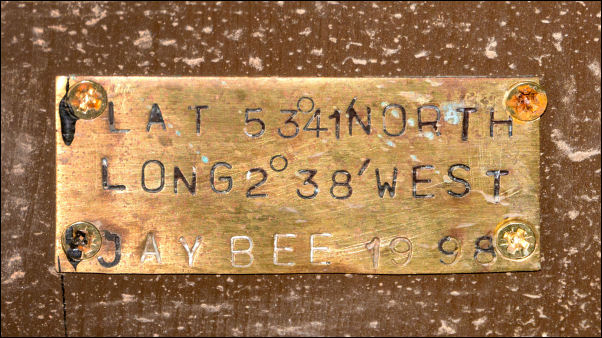 Text on Joe Breens bench brass plate: LAT 53°41' NORTH