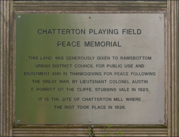 Chatterton Playing Field Peace Memorial. (near Ramsbottom).
