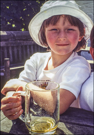 drinking with English troops and civilians in Ye Olde Hob Inn.