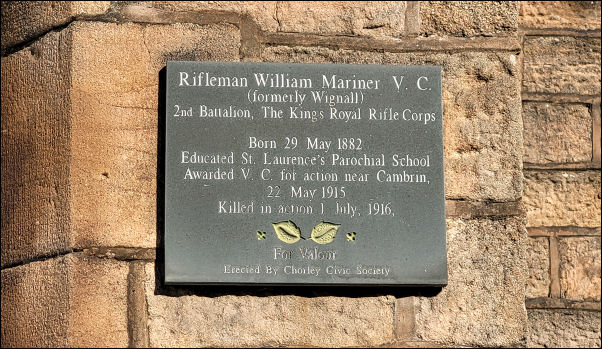 Parker Street, Chorley. Rifleman William Mariner V.C.