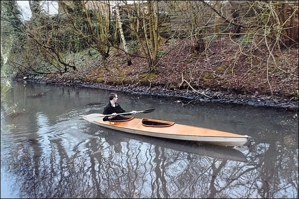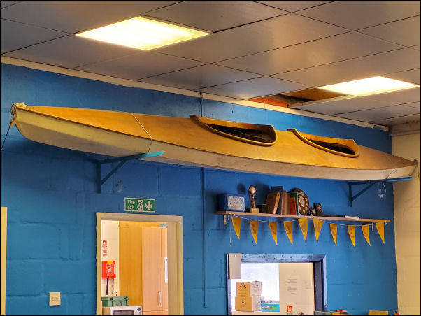 then showed me the canoe tied to the wall of the Scout Hut. |
