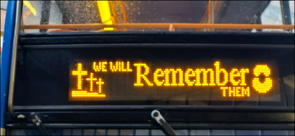 We Will Remember Them on a bus. |