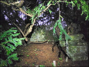 of the ancient yew remain and the roots coil back about around