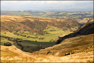 The weather continued fine and the views were excellent. I then headed for the interesting looking Woof Crag. The short distance took a long time and lots of detours because of horrible boggy ground. The struggle was worth it and I sat for a while to enjoy a coffee break before descending to the Old Corpse Road near High Birkin Knott. Surprisingly the wooden marker post was still in place. I crossed the track and continued up towards Selside Pike. On High Black Dodd I came across a nice dry grassy track but didn’t follow it for too long as I wanted to have a look down into Dodd Bottom and across to Hobgrumble Gill. I found a nice sheltered spot out of the wind and as it was so nice I decided to stop for an early lunch. |