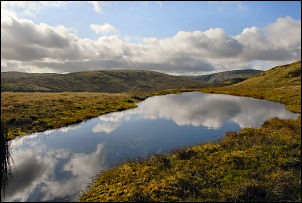 Back on the track I had an easy walk to the summit of Selside Pike and its large pile of stones forming a windbreak. I started to descend to the east by following the wire fence but it was such a nice day that I modified my planned route and turned south towards Howe. I’m glad I did because it’s an area I’ve not walked in before and found it was a delightful mix of humps, bumps, rocky outcrops and small tarns. Just before I started my descent to Mosedale Beck I came across a very picturesque small tarn which looked unnaturally blue under the equally blue sky. Peering into the water revealed a very dark peaty colour. Just before Mosedale Beck I came to the main path which soon became very wet as I approached the head of Swindale. Lower down it is well engineered but still wet. At the bridge I reached the rough walled track to Swindale Head buildings where the tarmac road starts. For the next couple of miles I had a pleasant walk back to the car and the only vehicle on the road was the postman’s |