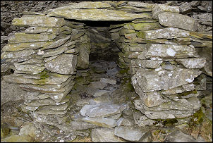 I didn’t stop but headed west to make the steep descent to Nan Bield Pass. Descending to Small Water I eventually came out of the cloud and was able to get my first views. Some people were sat by the tarn as I passed. I took a few pictures of the interesting stone shelters and continued the easy descent back to the Haweswater car park. |