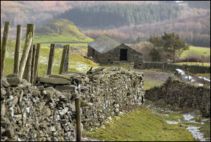 Arrived below Bigert Mire just before 8am and was surprised how light it was compared with just before Christmas when it was still dark at the same time. The traffic announcements on the radio said the Corney Fell road was closed due to snow. I set off for it on foot heading south along the narrow lane through Long Garth and Loganbeck. The cloud level was very low and I knew I would soon lose any views. |