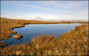 My next objective was to investigate a small tarn on Archer Hill which I hadn’t visited before. There is an easy path to Rispa Pike but I had to leave it to cross open ground to Archer Hill. Just over the hill the tarn came in to view. It looked very picturesque under the blue sky and the views down into Lantley Gill were good as well. Below Whitefold Moss the indistinct path joins a stoned track which I followed north to Weather Hill. The map shows a path across to Waskew Head farm but there is no sign of it on the ground. I had to guess the route across as the buildings don’t come into view for a while. Several old vehicles were scattered around and the buildings looked run down but occupied; though nobody was about. I continued down the access track, which was quite rough in places, until I came to some lock up garages and Tebay. |