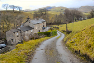The walking was easy and pleasant but at Thwaite farm I left the flat riverbank and headed steeply up to the stile that leads into the farmyard. I spoke to the farmer’s wife and mentioned the conversation I’d had with there husband a couple of weeks ago. |