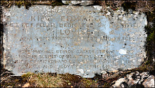 I descended to the road and followed it a short distance before joining a path to the left and heading steeply up towards King’s How. It was quite a good and well used path and gave impressive views of Borrowdale as I got higher. It was steep in places but when it levelled out near the summit I wound my way through low humps to the summit of King’s How. There was a small pile of stones to mark the spot and wonderful views all around. The main reason I was up here was to check out a memorial marked on the map. I was pleasantly surprised to find it just below the summit on the NE side. A flat stone slab was set in the hillside and reads: |