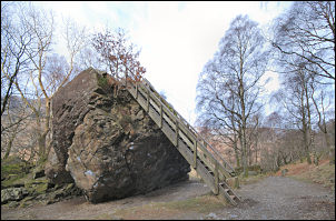 I knew it was pay and display and I horrified by the obscene amount of money motorists would have to pay. For the privelige of parking on a piece of dirt with no security they wanted £3.40 for 2 hours; that was the minimum charge. The main car park in Keswick costs £1.85 for the same duration with a minimum charge of 50p for 30mins. I followed the path to the Bowder Stone which I hadn’t visited in many years. |