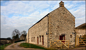 The continuing path through the fields is not well marked but eventually I emerged at Gill Farm and walked down the lane to Stone Farm. This is a fine old building and space for a datestone above the door was annoyingly blank. |