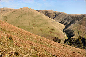 The map shows a track starting here. It did and I followed it steadily up as it climbed above Hobdale Beck. It’s the first time I’ve visited this secluded valley and it must be one of the best hidden gems of the area. The track continued high in to Hobdale Gill until it reached the gill itself. This is where it stopped. I was heading for Middle Tongue so took a direct line straight up the steep fell-side. The climb was worth it and I emerged on to the ridge at a nice flat spot with a nearby spring of clear water. |