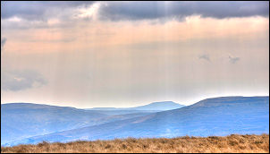 A faint path follows the fence up on to Calders. It wasn’t particularly clear weather but the distant views were still there. I could see the radar station on Great Dunn Fell to the north and Ingleborough to the south. Over Calders I followed the main path south then took the indistinct Arant Haw branch. |
