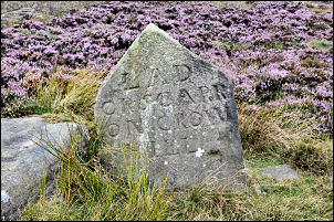 The weather was dry but slightly hazy in the distance but as the day continued it became clearer. At Smithy Clough the track runs through an area of humps and bumps and I couldn’t tell it they were natural or old quarry workings. I reached the road to Haworth and had a difficult time walking to Watersheddles Reservoir due to the volume of traffic and no path by the road. The map shows a path over the fence but I couldn’t see it. At the reservoir I crossed the embankment and it was so nice to walk in the quiet again. Ahead I could see Crow Hill, which is where I was heading but there was no path. I followed a line of old boundary stones but the thick heather made it difficult going. Those stones I saw were inscribed ‘KC 1902’. I’m guessing Keighley Corporation. At the top I came to a large lump of rock inscribed Lad or Scarr on Crow Hill. |