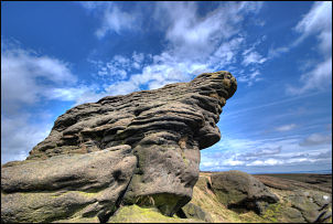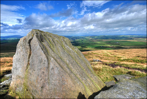 The wind was quite strong now but I managed to get some shelter behind an old stone building to have my butties. I then headed for Boulsworth Hill across featureless moor with no footpath. At first there was a faint path but it soon vanished. The rest of the moor was difficult going until I got near the Fox Stones. The views were now very impressive with Pendle Hill in the distance and the huge stone outcrops in the foreground. Over Boulsworth Hill and Lad Law the going was easy due to a well trodden path. I enjoyed myself taking pictures of the stones before taking a good path down to the Pendle Way. I took a minor path across Alder Hurst Head and down a farm access track back to the car. Just as I got back Eric rang on the mobile phone to say they’d almost completed their day’s walk and they were about to leave Grindleton to walk towards Sawley. I set off and met them about half a mile from Sawley. I drove them back to Eric’s home, where I was to pick them up in the morning to drop them off for the next stage to Settle. |