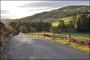 Continuing on to a bend in the wall I turned left and down to a gate access and a track sloping down off the fell. The views down the Hodder Valley were very impressive and it was so clear I could see the Welsh hills in the distance. At Beatrix Farm I crossed a large field to the River Dunsop where I crossed by a wooden footbridge. The tarmac road on the far side soon took me back to Dunsop Bridge and a lot more people than when I left. |