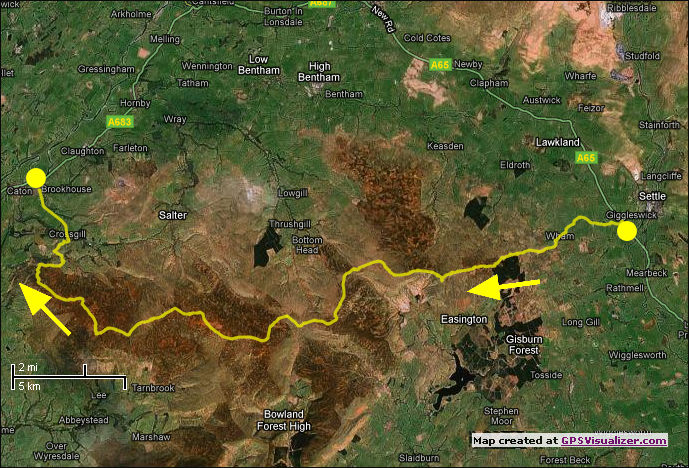 Giggleswick, Bowland Knotts, Cross of Greet, White Hill, Wolfhole Crag, Ward’s Stone, Caton, Lancs. Tue 15 - Thu 17 Dec 2009