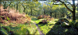 ![]() woodland path approaching Birks |