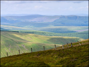 There was wet ground for just over half a mile but as I started up the steeper hill to Shepherds’ Cairn it was much better underfoot. The cairn was worth making a detour to see then I set off to find the wonderfully named Porridge Cairn. It was shown on the map as being some distance east of the fence. I headed in the right direction but then started to descend towards Score Burn but I didn’t want to lose any height. |