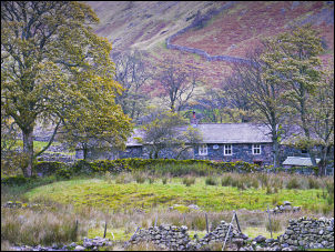 They yapped away but kept their distance. The farmer came out of the barn to see what was going on but soon returned. The footpath sign pointed me to the path up the fell and a footbridge over Aira Beck then along a wet path up by the wall. The route became fairly indistinct after a while then I came to some new fencing where the path seemed to end. |