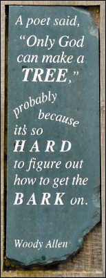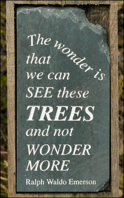 | Walking through Hospital Plantation I saw several thoughtful quotes cut in slate and mounted on wooden posts. | ||||