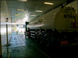extra time to re-fuel. Two road tankers reversed on to the ferry and
