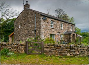 In the Historical Society Library in Sedbergh are references to old coal shafts in the area but the coal quality was low. Taythes Gill was a deep and interesting but no obvious way out at the other side. I stayed high and crossed fields to the track to Taythes. I turned left and descended to the buildings of Foxhole Rigg. There was nobody about but two cars were parked there. |