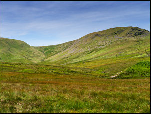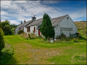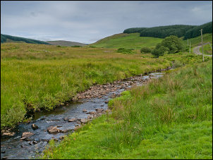 The map showed an old site called Kinnelhead Tower but I couldn’t see any sign of it. Through the farm the track continued up the valley (or should I say Glen?) by Kennel Water and I kept looking back for any sign of a tower, but I couldn’t see any. I reached a substantial bungalow called Blairmack which seemed to have all facilities hooked up; power, telephone etc but no sign of any occupation. |