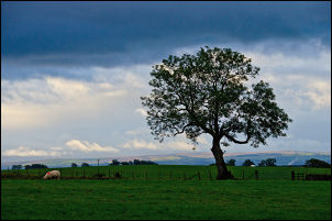 As I walked along the Ranbeck Farm access road I had brief views of the distant Lake District fells and a little sunshine in the distance. I reached the isolated house of Wythwaite then turned right along the rough track towards Cringle Moor. |