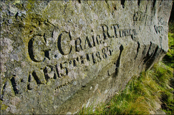 There is no path so I followed the contour for a while then steeply down to Crowdundle Beck where I managed to get across without any problems. On the far side I climbed up to the base of Brownsnout Band and then towards Middle Tongue Beck where I had another look at the old mine level and ruined building. I was here last week but then it was mist and heavy rain. Now I had ideal conditions and was able to see the miner’s names carved on the stone slab with full clarity. |