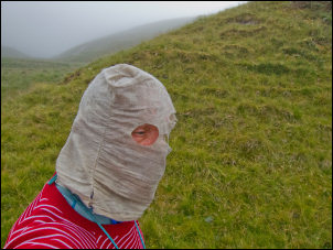 bag with eyeholes over my head when outside. |