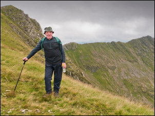 As we left to start the descent we mad a short detour to Brownrigg Well where we could top up our water bottles. The waster issues from a spring, is crystal clear and continues at a steady pace throughout the year. We descended the steep path down across Lower Man and Browncove Crags. We descended below the cloud and had a good view of the surrounding fells. We could also see many people coming up the path from the Swirls car park far below. It was an excellent path and we descended steadily down to get back to the car about 13:45. I shook Eric’s hand to congratulate him on his great achievement. Then he said we should return to do the walk again in 10 years time to celebrate his 90th birthday. I don’t think that will happen. But I hope I’m wrong. |